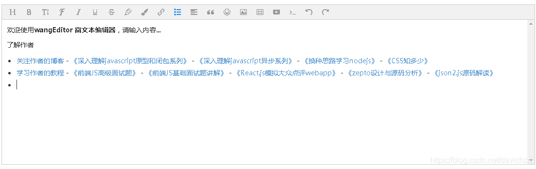 富文本编辑器具有的基本功能就是对编辑区选中的文字通过工具栏提供的功能对文字或选区进行操作.比如文字加粗,斜体,创建表格,插入链接和图片等一系列的操作.然后可以通过源码查看查看编辑后产生的源代码.