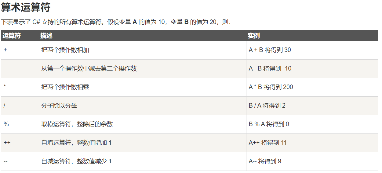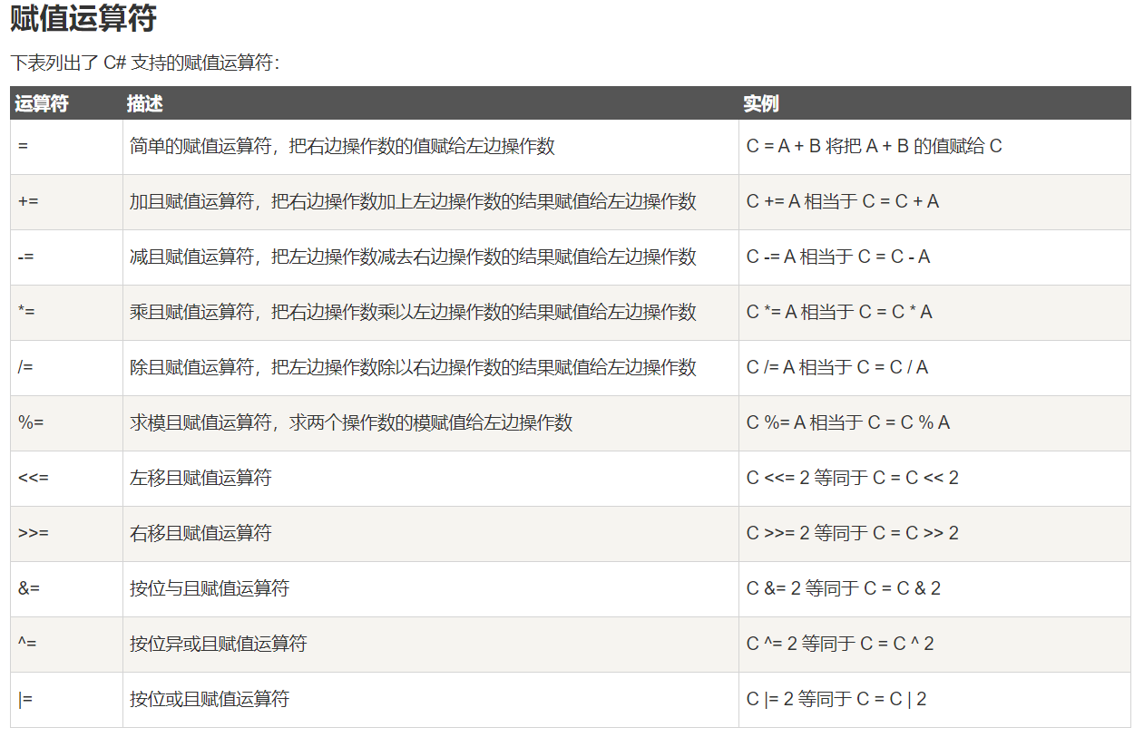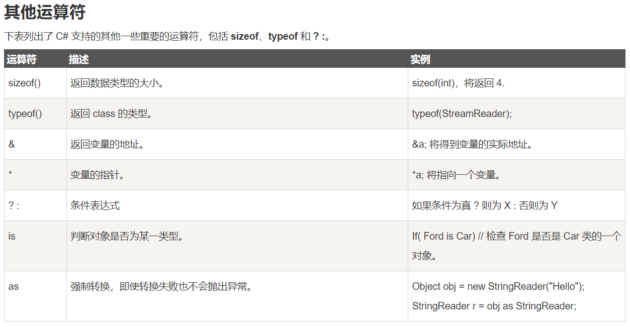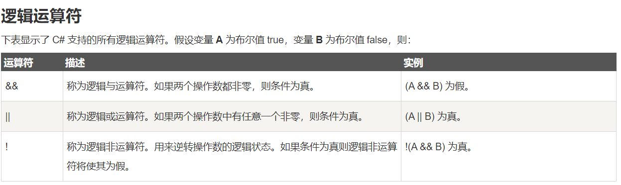 逻辑运算符:&&,||,! (C#中的逻辑运算符的操作数必须是布尔值,不能是""字符串,数字0,非0,null)