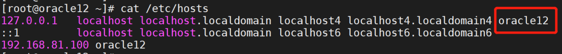 第一:编辑/etc/hosts文件,在127的那一行后面添加主机名,小编的是oracle12,如下图所示: