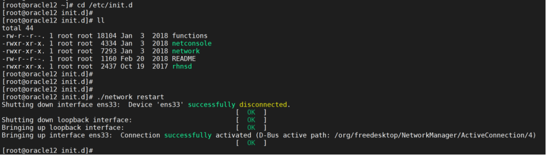 第二:修改完/etc/hosts文件后,进入/etc/init.d目录,重启network使其生效: