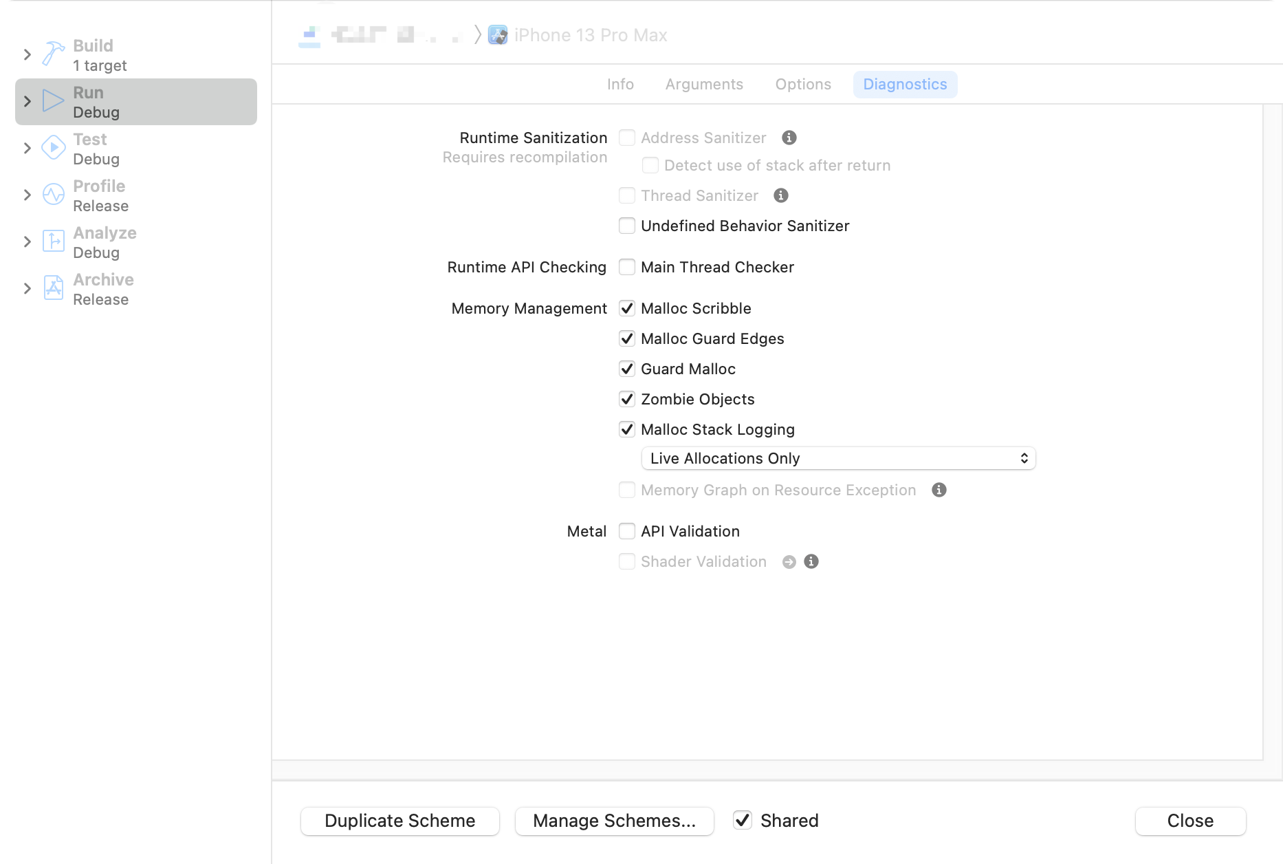 去除Malloc和Zombie设置: