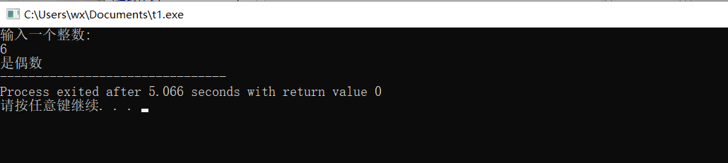 // 程序功能: // 要求用户从键盘输入一个整数,判断其是奇数还是偶数 #include <stdio.h> int main() { int x; printf("输入一个整数: \n"); scanf("%d",&x); // 在×××处填写相应表达式 // 使得当表达式成立时,判定x是奇数,否则是偶数 if( x%2==1) printf("是奇数"); else printf("是偶数"); return 0; }