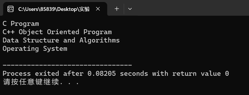 1 #include <stdio.h> 2 #include <string.h> 3 void sort(char *name[], int n); 4 5 int main() { 6 char *course[4] = {"C Program", 7 "C++ Object Oriented Program", 8 "Operating System", 9 "Data Structure and Algorithms"}; 10 int i; 11 12 sort(course, 4); 13 for (i = 0; i < 4; i++) 14 printf("%s\n", course[i]); 15 16 return 0; 17 } 18 19 void sort(char *name[], int n) { 20 int i, j, k; 21 char *tmp; 22 23 for (i = 0; i < n - 1; i++) { 24 k = i; 25 for (j = i + 1; j < n; j++) 26 if (strcmp(name[j], name[k]) < 0) 27 k = j; 28 29 if (k != i) { 30 tmp = name[i]; 31 name[i] = name[k]; 32 name[k] = tmp; 33 } 34 } 35 }