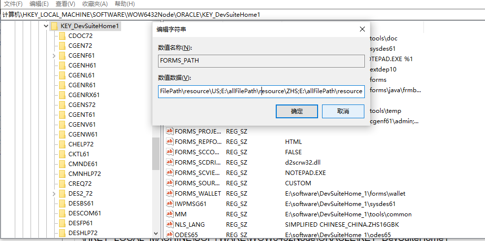 \HKEY_LOCAL_MACHINE\SOFTWARE\WOW6432Node\ORACLE\KEY_DevSuiteHome1