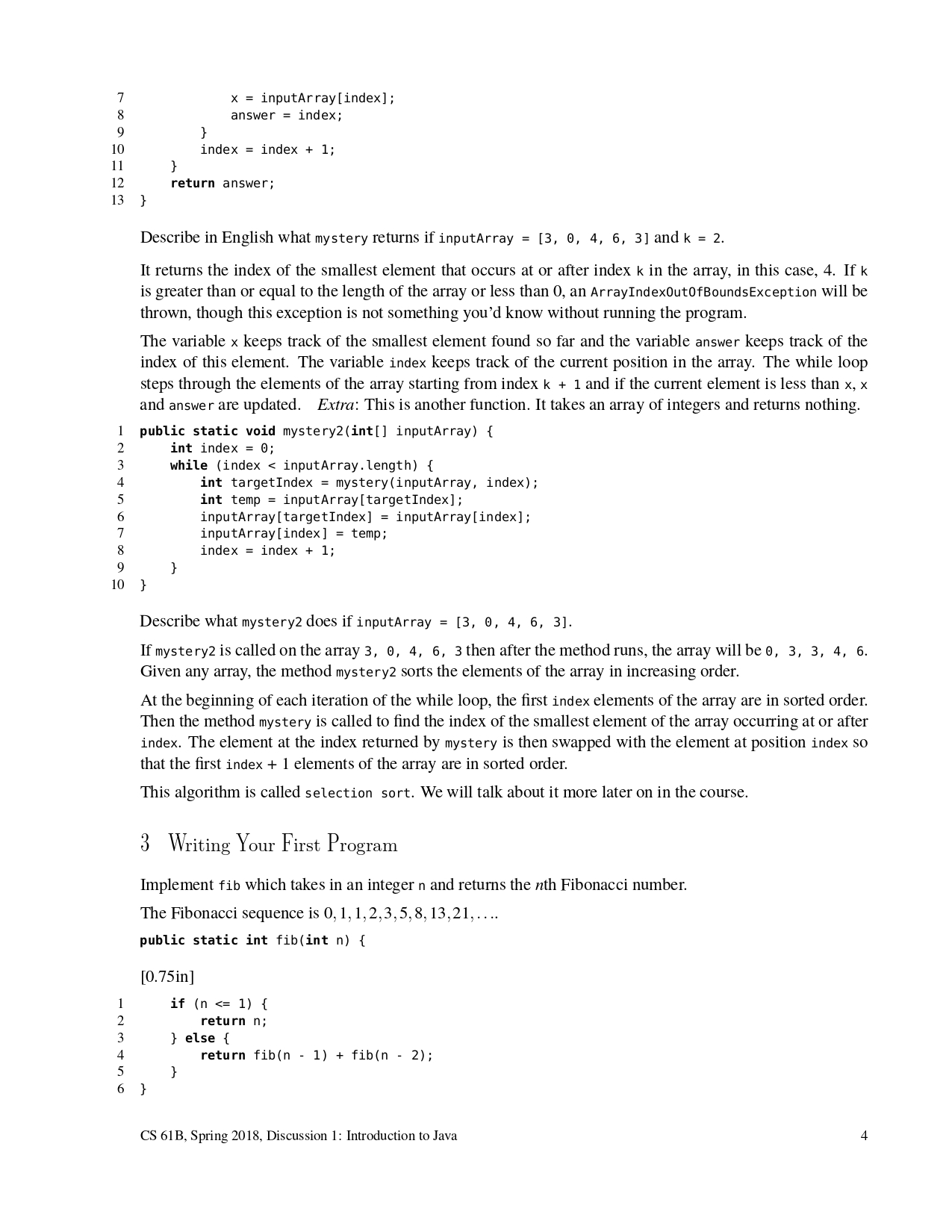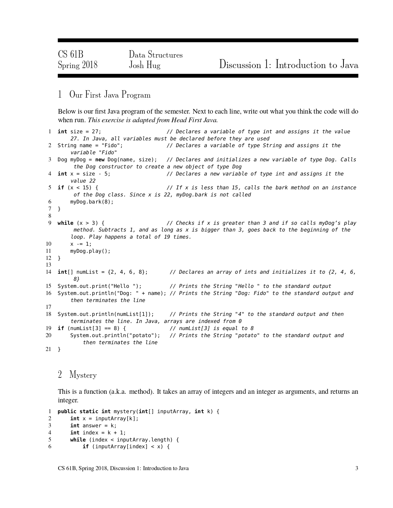 CS61B srping 2018 disc01 sol https://sp18.datastructur.es/