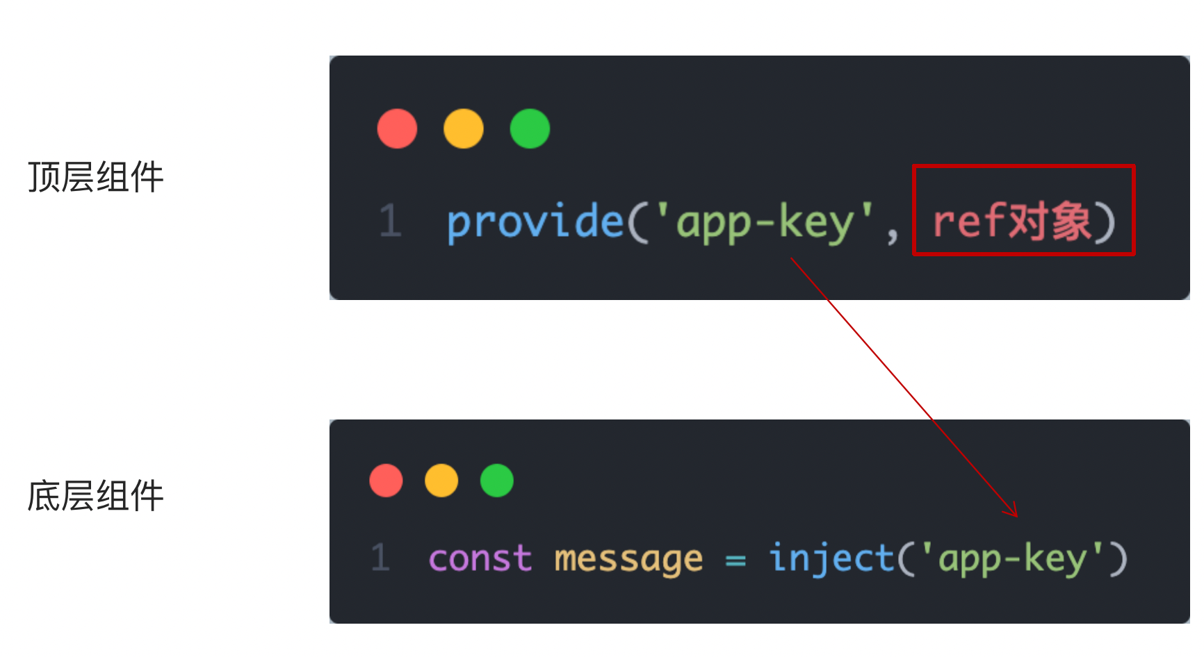2. 如何在传递的过程中保持数据响应式? 第二个参数传递ref对象