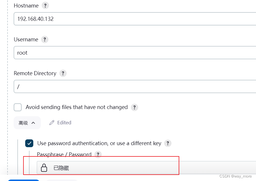 Remote Directory:远程服务器上的工作目录路径,此目录必须存在,否则不会被创建。发布者只能将文件放置在此目录下,一般我们填/根目录即可,如果为空则默认是用户目录(cd ~的目录)