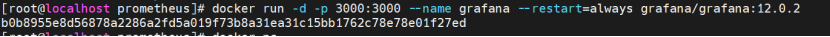 部署命令:docker run -d -p 3000:3000 --name grafana --restart=always grafana/grafana:12.0.2