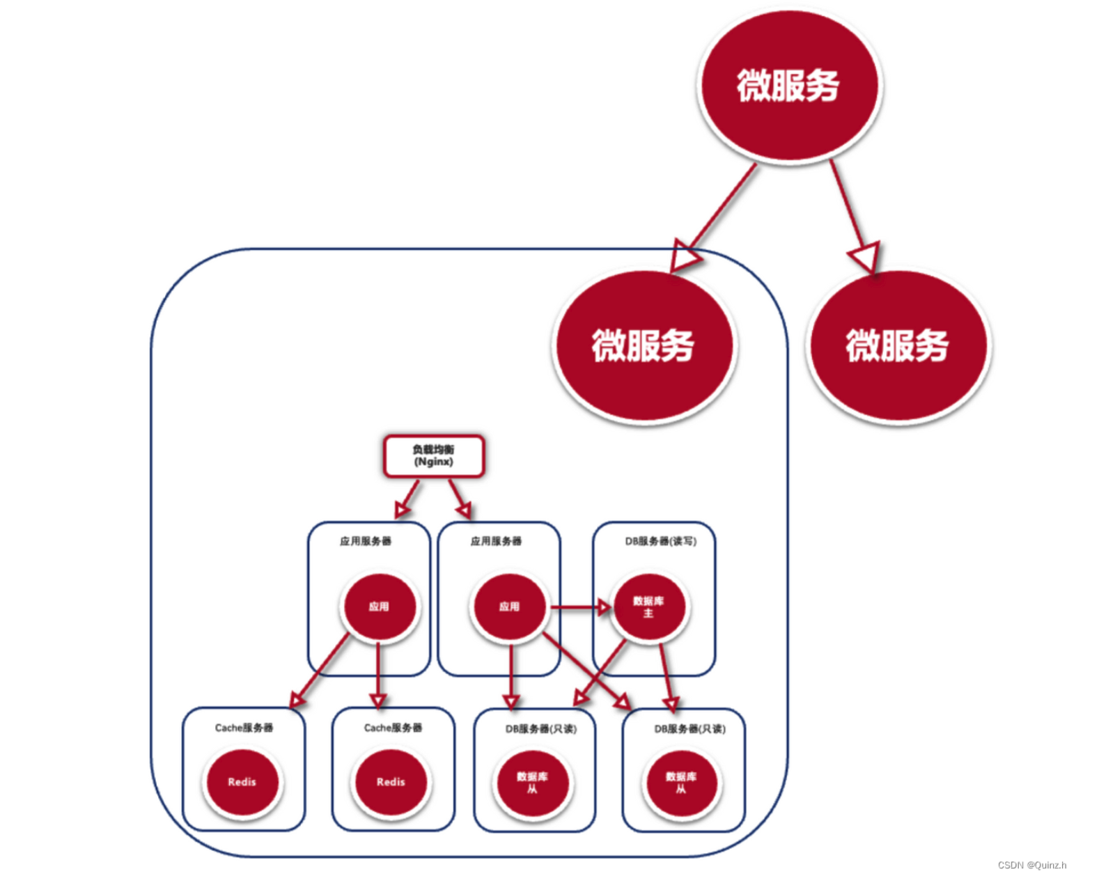 7.微服务架构:在应用越来越多越来越复杂的情况下使用。重点:注意垂直拆分的服务边界。微服务架构就是对一个大的应用进行垂直拆分,而服务拆分的依据就是各个服务的数据尽量独立。(应用程序被拆分成多个小型服务,每个服务都专注于处理特定的业务逻辑,并通过API接口进行通信和交互。每个服务都可以独立地进行开发、部署和维护,从而提高了系统的可扩展性和可维护性)。比如:博客系统,可以考虑把文章系统、评论系统、图片文件系统、浏览收藏点赞统计系统等进行拆分。