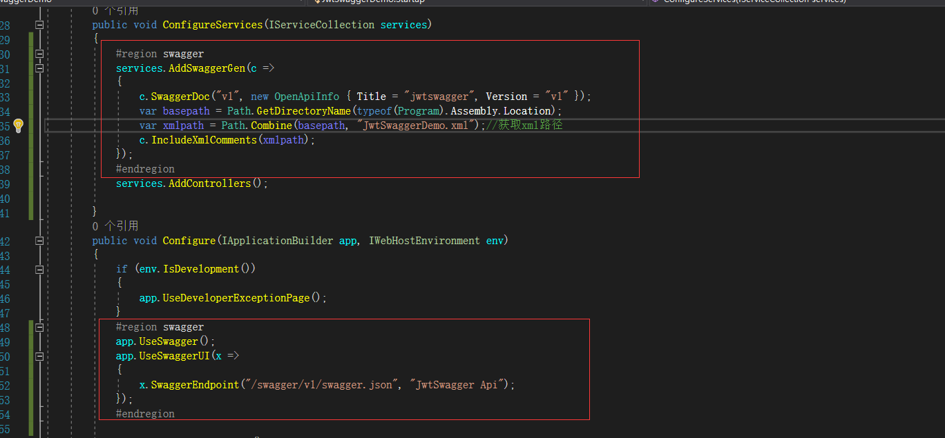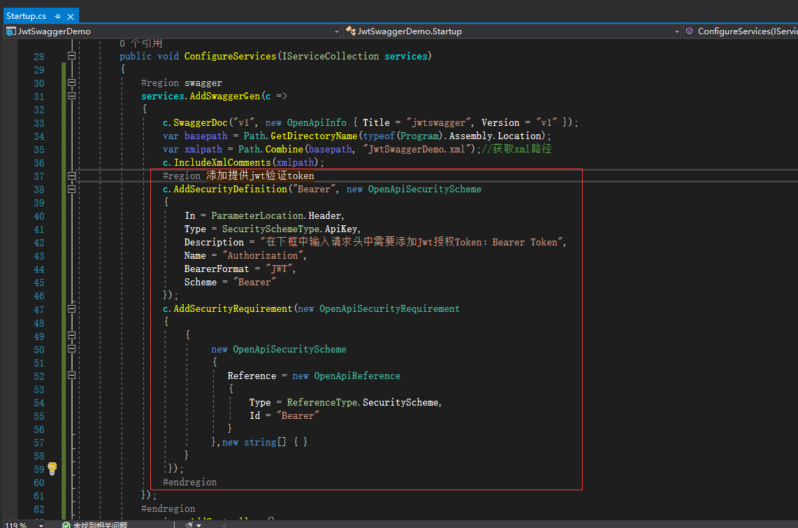 Startup 向swagger页面添加提供验证token相关配置