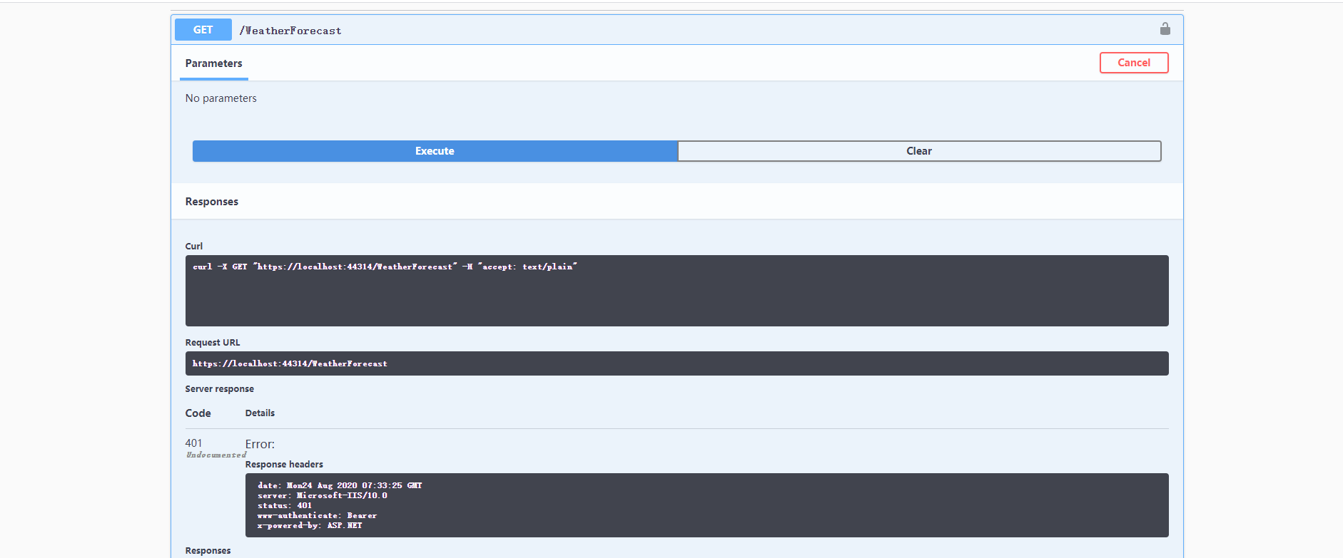 未添加token的请求 401