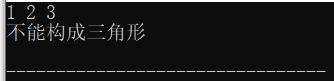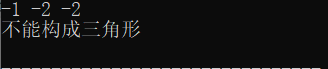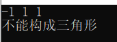 #include <stdio.h> int main() { double a,b,c; scanf("%lf %lf %lf", &a, &b, &c); if(a<0 || b<0 || c<0) printf("不能构成三角形\n"); else if(a+b>c && a+c>b && b+c>a) { if(a==b && a==c) printf("构成等边三角形\n"); else if(a==b || a==c || b==c) printf("构成等腰三角形\n"); else printf("构成一般三角形\n"); } else printf("不能构成三角形\n"); return 0; }