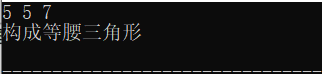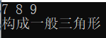 #include <stdio.h> int main() { double a,b,c; scanf("%lf %lf %lf", &a, &b, &c); if(a<0 || b<0 || c<0) printf("不能构成三角形\n"); else if(a+b>c && a+c>b && b+c>a) { if(a==b||a==c||b==c){ if(a==b&&a==c) printf("构成等边三角形\n"); else printf("构成等腰三角形\n"); } else printf("构成一般三角形\n"); } else printf("不能构成三角形\n"); return 0; }