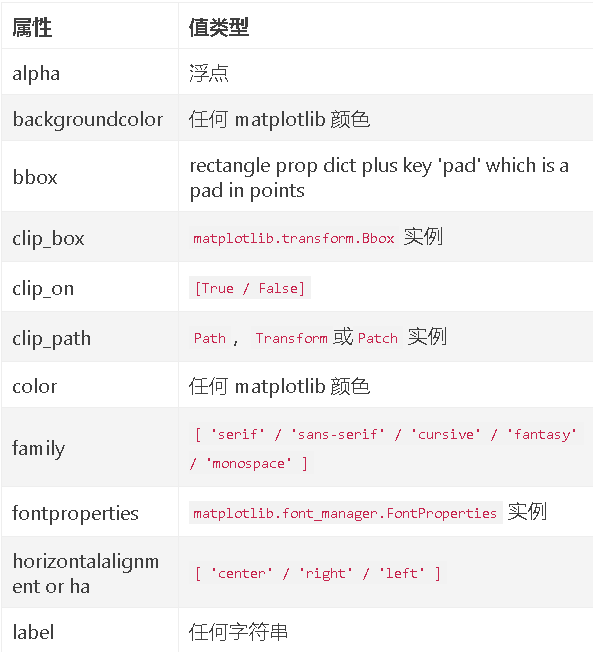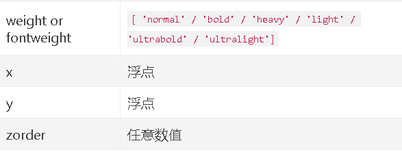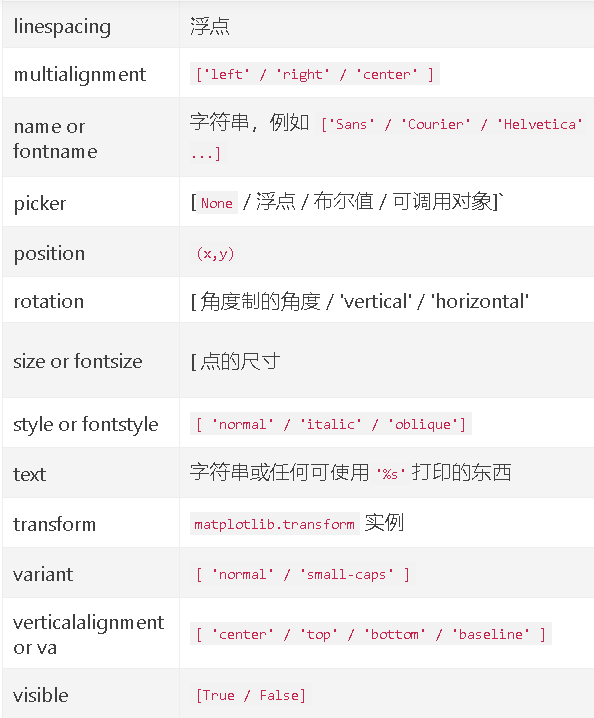 - withdash:布尔值,可选,默认值:False。创建一个〜matplotlib.text.TextWithDash实例,而不是一个〜matplotlib.text.Text实例。