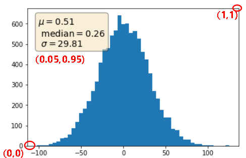 import matplotlib.pyplot as plt import numpy as np fig,ax = plt.subplots(1) x = 30 * np.random.randn(10000) mu = x.mean() median = np.median(x) sigma = x.std() textstr = '$\mu=%.2f$ \n $\mathrm{median}=%.2f$ \n $\sigma=%.2f$'%(mu,median,sigma) ax.hist(x,50) props=dict(boxstyle='round',facecolor='wheat',alpha=0.5) ax.text(0.05,0.95,textstr,transform=ax.transAxes,fontsize=14,verticalalignment='top',bbox=props) fig.show()