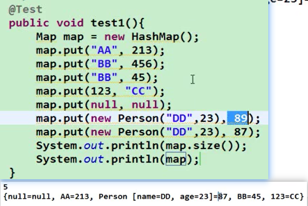 - 向HashMap中添加元素时,会调用key所在类的equals()方法,判断两个key是否相同,若相同,则只能添加进后添加的那个元素。