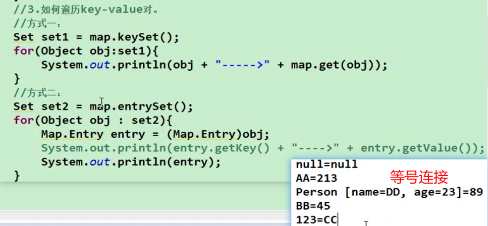 - 一个key-value对构成一个entry(Map,Entry),entry使用Set来存放。