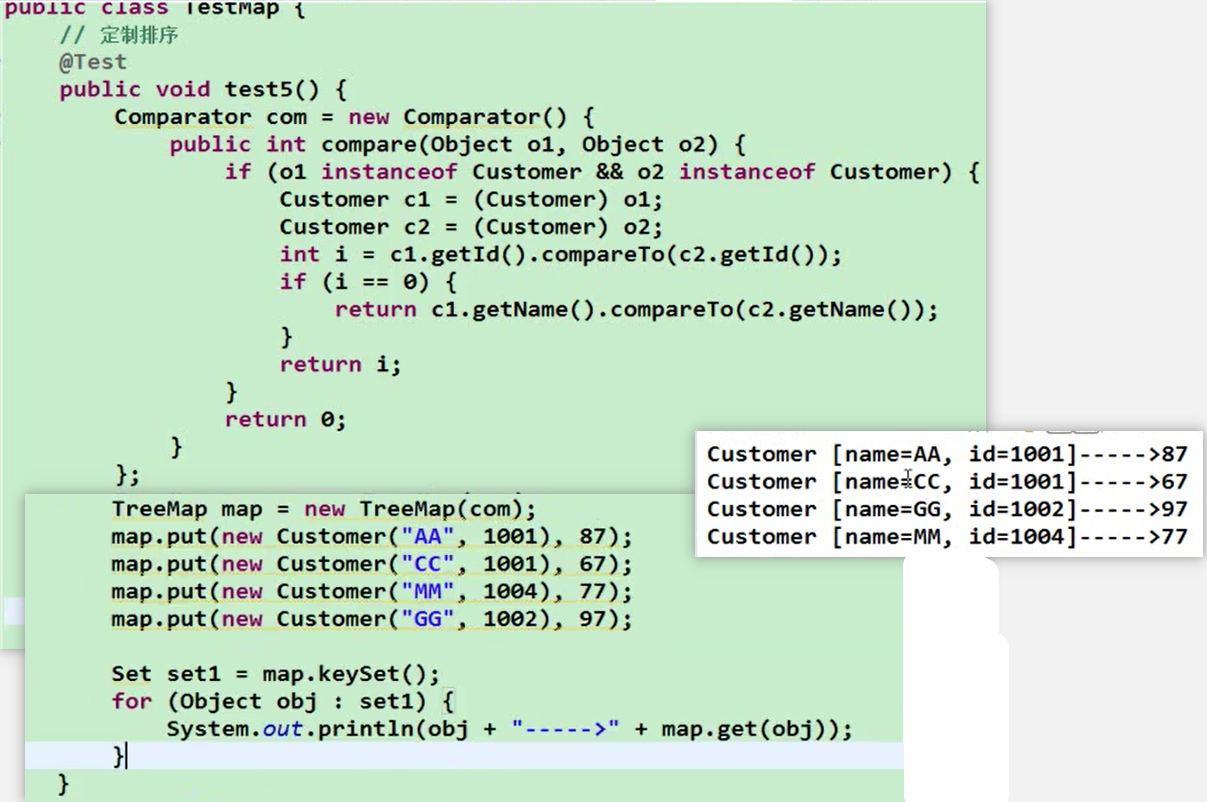 - 按照添加进Map中的key的指定属性进行排序。要求,key必须是同一个类的对象。