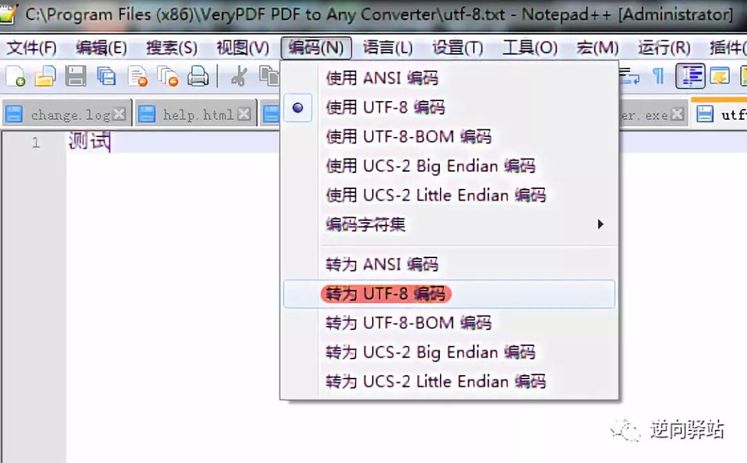 notepad++写入内容,转码