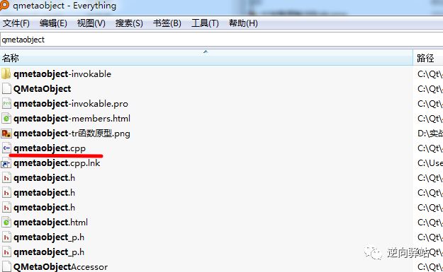 开始寻找目标函数源码,everything搜两个函数类命,QCoreApplication和QMetaObject,如下图