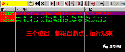 发现有三个地方调用了这个字符串地址,全部下断点