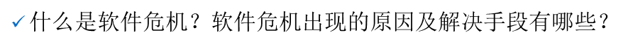 软件危机出现原因:1.软件开发无计划性,项目没有被很好地理解;计划不周,最终导致进度拖延,经费预算上升。2.软件需求不充分,开发的软件不能满足用户的需求。3.软件开发过程无规范,没有充分的文档资料。4.软件可靠性缺少度量的标准,质量无法保证。5.软件难以维护,易升级。