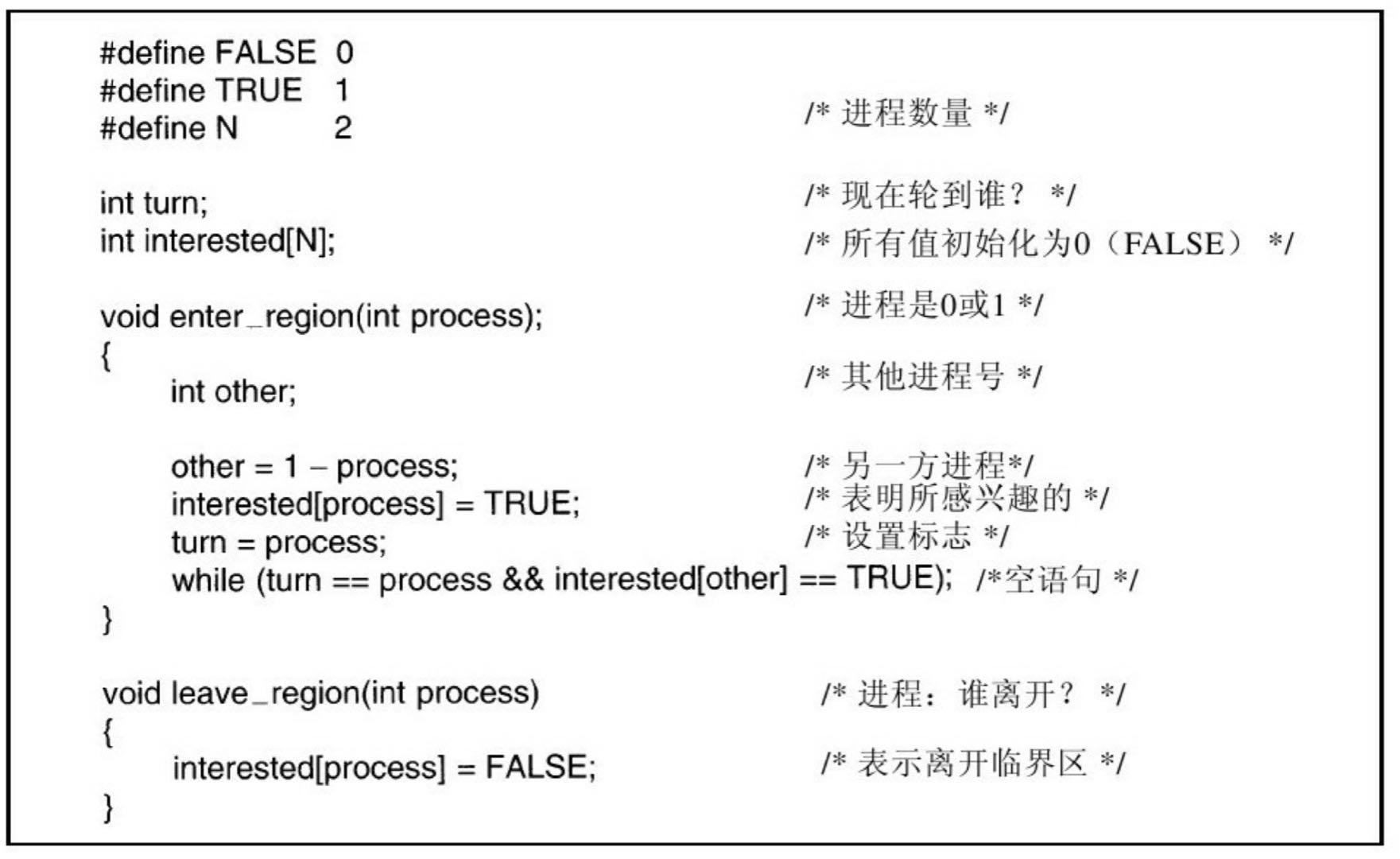 假设1:线程1进入临界区之前,线程2不感兴趣。则可直接进入临界区。之后线程2试图使用临界区,首先设置flag,然后修改turn,turn的值保证为2,线程2阻塞。