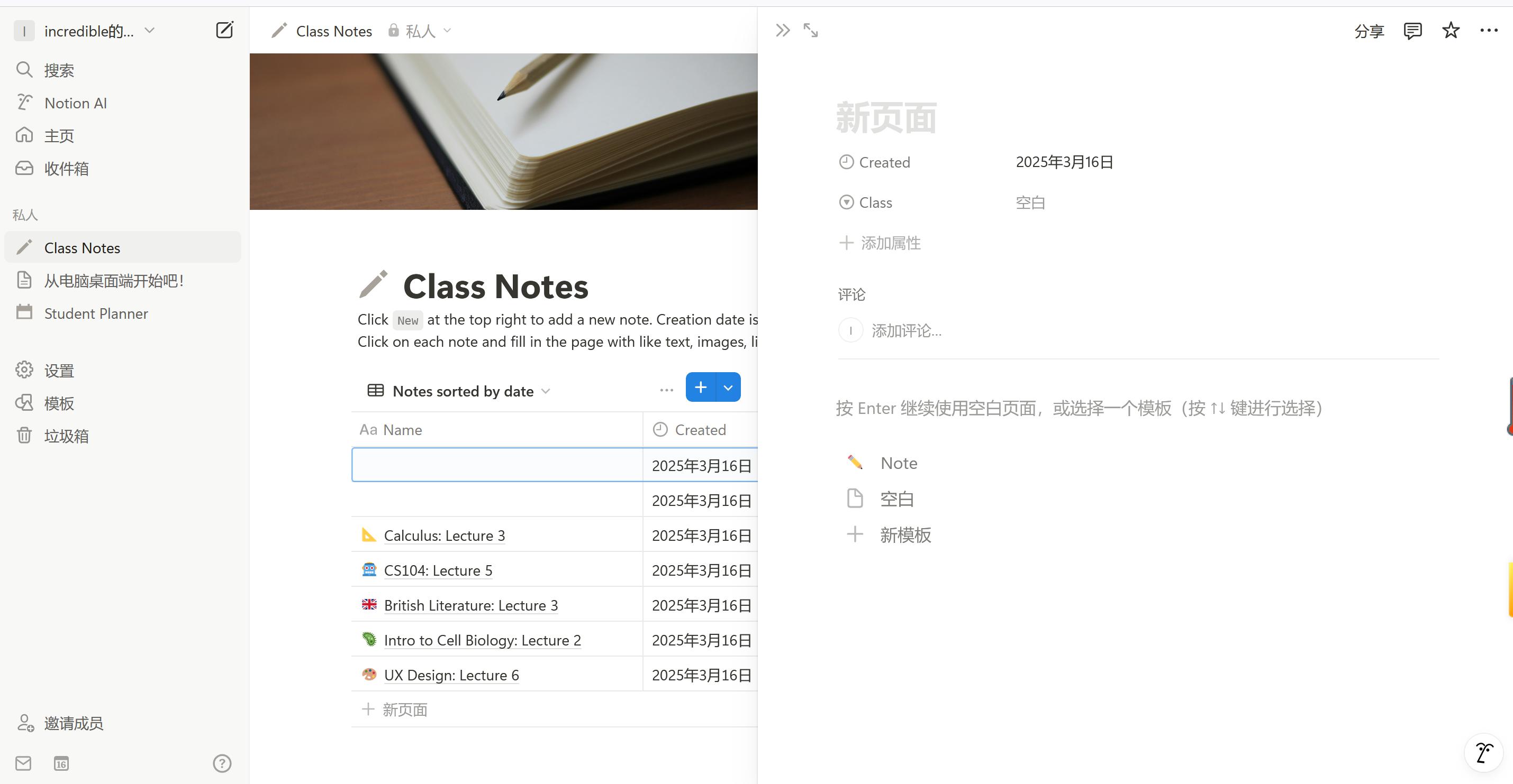 另外,在后面提供了Class Note,用于记录课堂笔记,