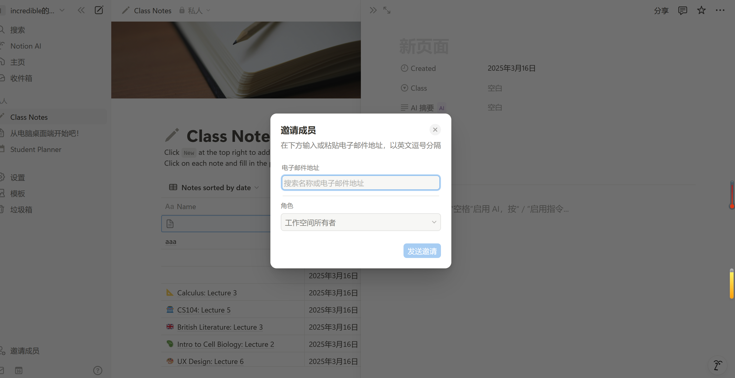 最后,Notion还提供了多人团队协作,如同github上面,只需要添加邮箱号即可申请: