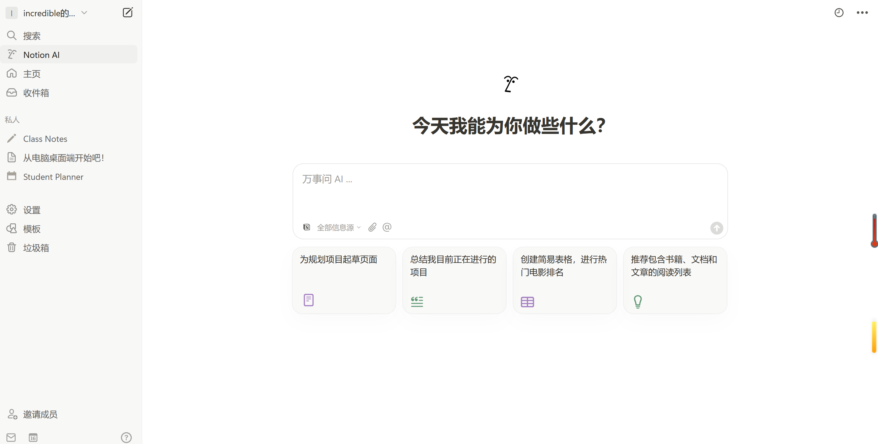 比较时代化的一点是,Notion直接在里面安装了智能AI助手,不仅仅是下面展示出来的界面,还有在每个记录的地方均有。