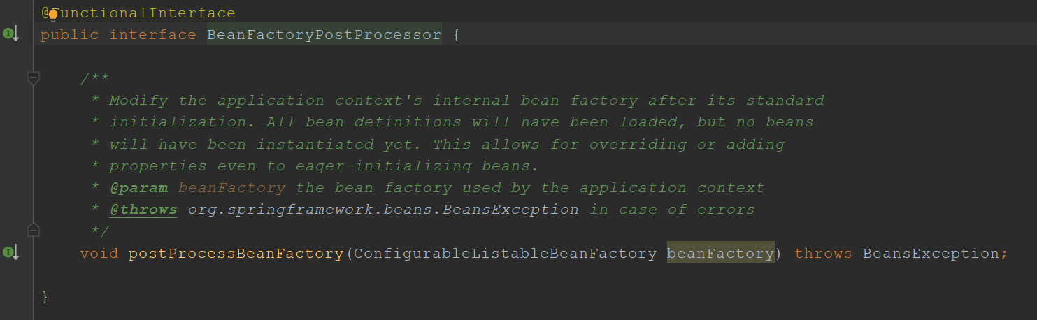 beanFactory.getBeanNamesForType(BeanFactoryPostProcessor.class, true, false);//同样,先获取实现类