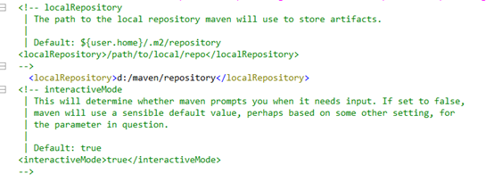 1 <localRepository>d:/maven/repository</localRepository>