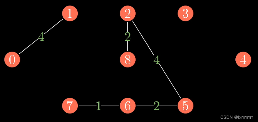 然后从小往大依次取边,如果加上这条边和之前的边构成了环,就舍弃这条边,不然就加上,直至取得n-1条边,构成一棵树