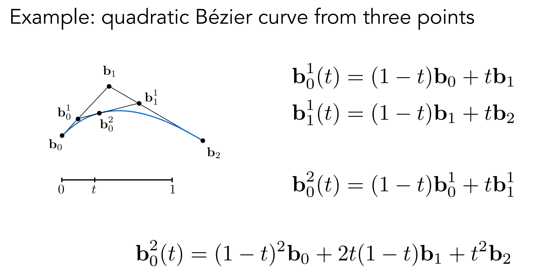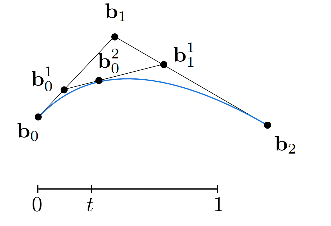 - 在一段时间0~1之间,对于每一个t时间点,标出在b0b1和b1b2线段相同比例的b10和b11