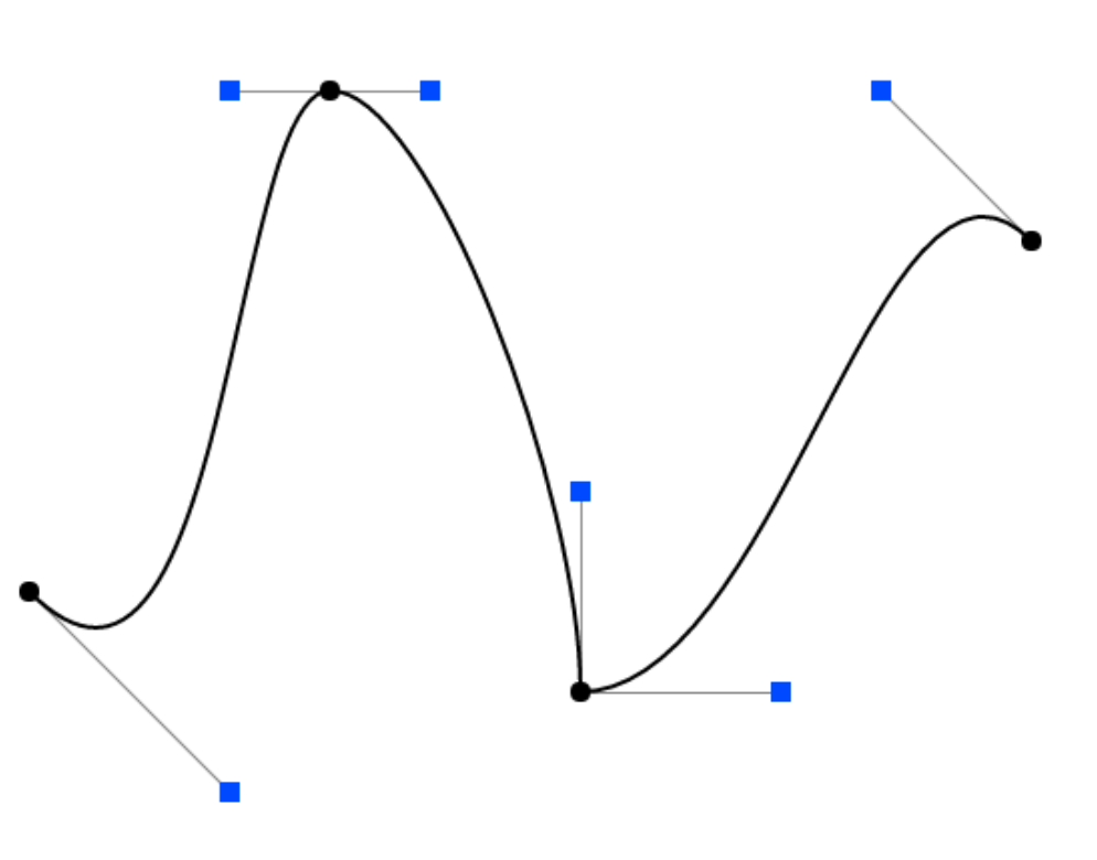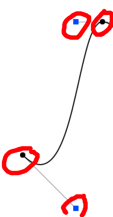 - 即该点的左右两个蓝色控制点方向相反,长度一致。