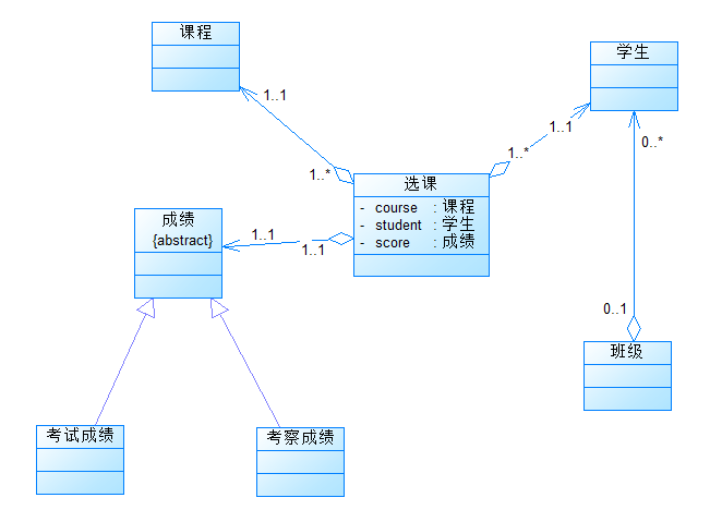 要求:修改类结构,将成绩类的继承关系改为组合关系,成绩信息由课程成绩类和分项成绩类组成,课程成绩类组合分项成绩类,分项成绩类由成绩分值和权重两个属性构成。
