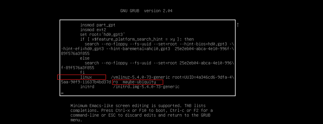 我们就到靶机开机的初始页面按e,进入以下界面