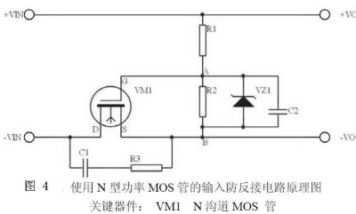 该方法利用了MOS管的开关特性,控制电路的导通和断开来设计防反接保护电路,由于功率MOS管的内阻很小,现在 MOSFET Rds(on)已经能够做到毫欧级,解决了现有采用二极管电源防反接方案存在的压降和功耗过大的问题。