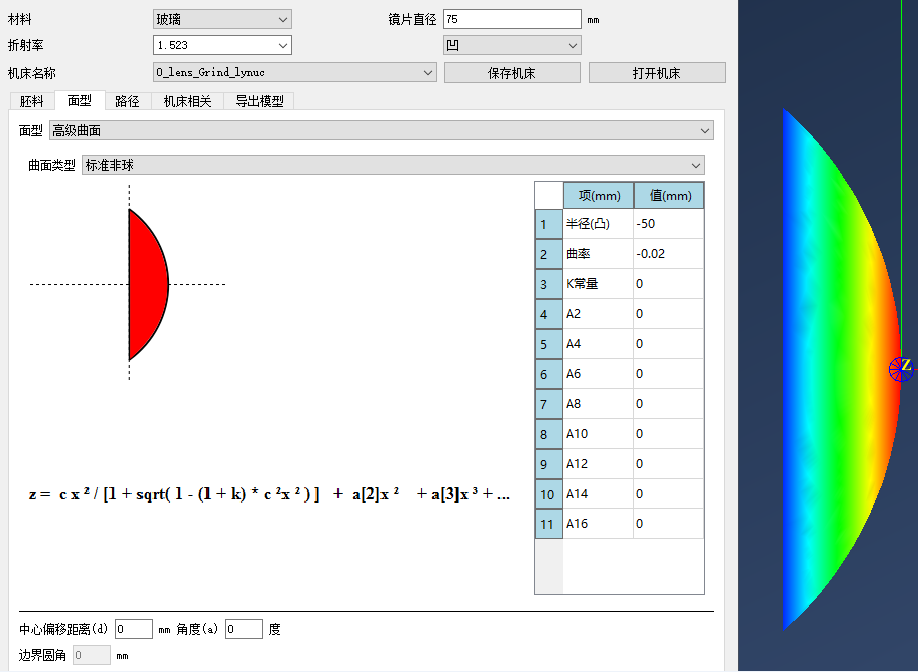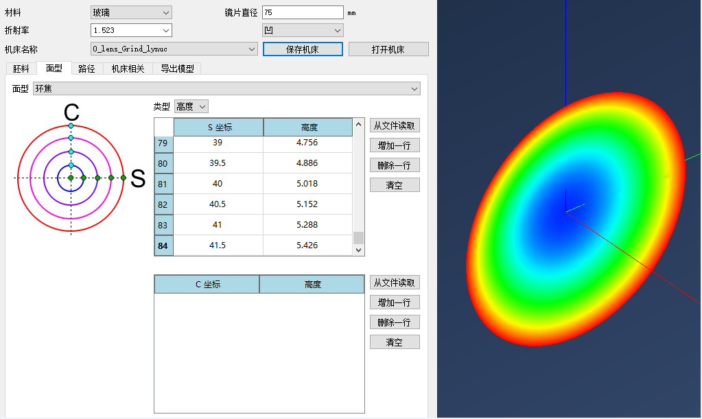所有类型镜片制作的第一步,就是要把面型加工出来,比如在一个毛坯片上加工出近似500度,散光600度。现有加工用机床中,高端的是进口的国外机床,如劳尔,中低端即使国产的也很少。而面型设计软件和加工数据生成cad、cam软件