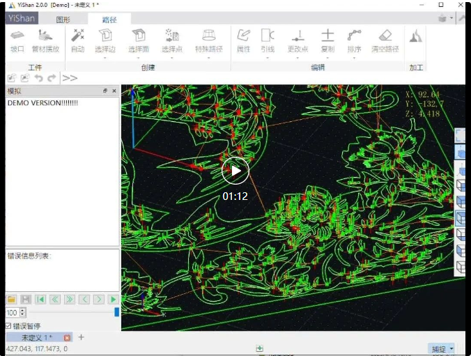 经过2个月的优化,现推出三维切割CAM软件的新版本2.0,该版本优化了路径计算算法、计算速度、稳定性,提高了模拟速度等。