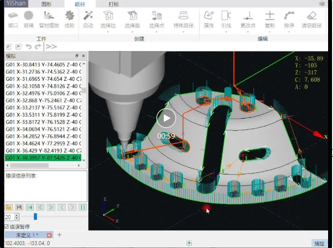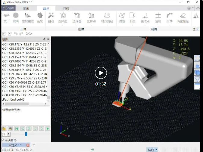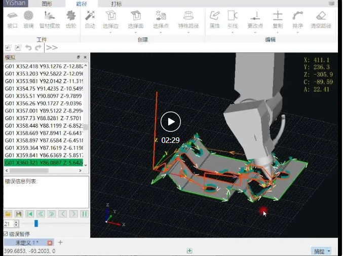飞快的模拟速度、模拟过的路径以不同颜色显示、模拟过程干涉检测暂停与标红让路径的验证能快速完成;