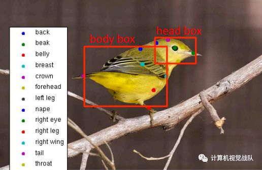 数据集:CUB-200-2011 (12k张图像,200类,15个点)