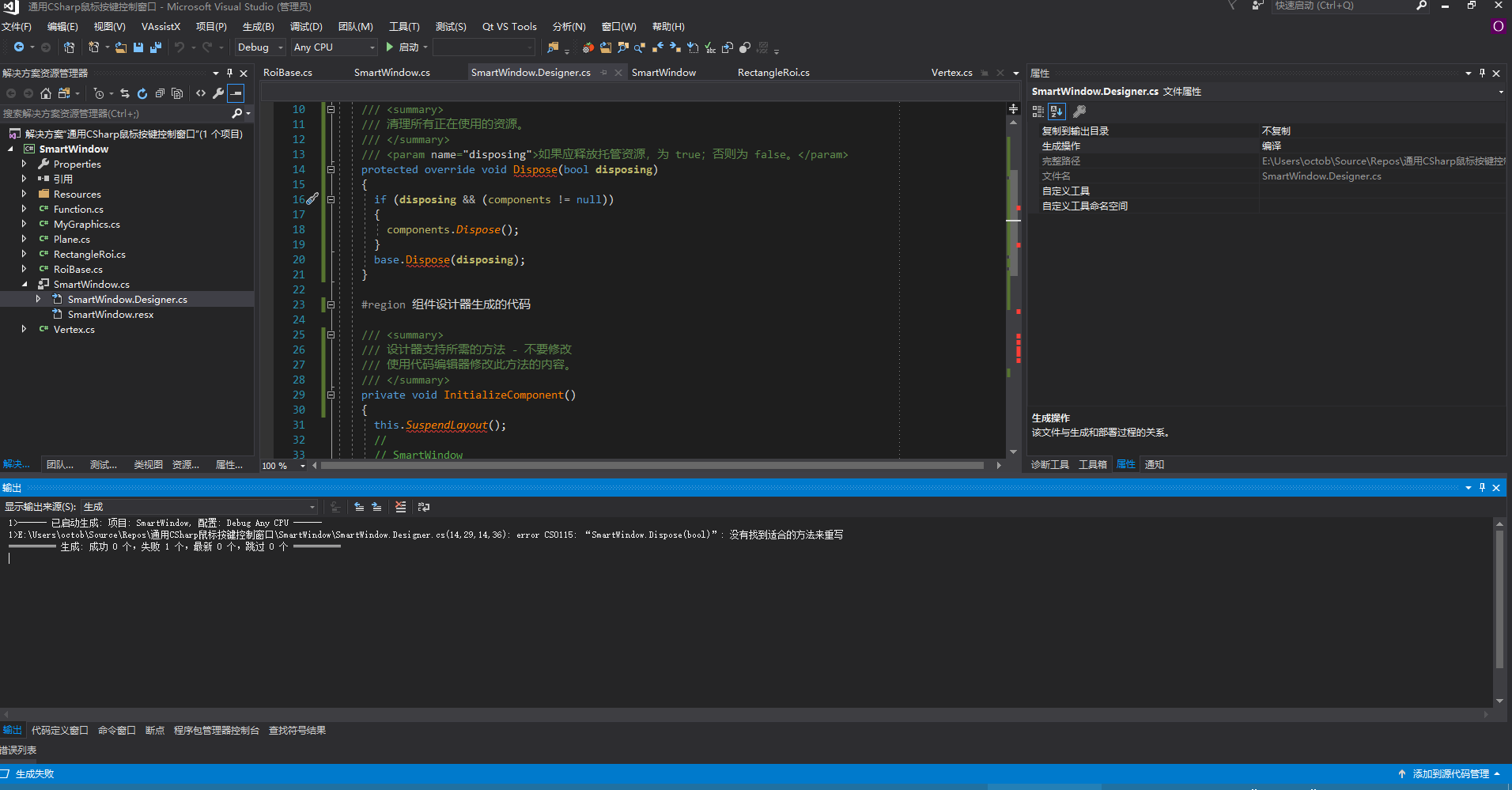 *.Designer.cs编译错误: error CS0115“*.Dispose(bool)”:没有找到合适的方法来重写