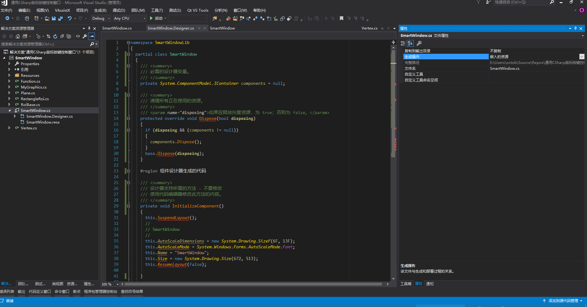 *.Designer.cs属属性中,生成操作:编译,不用修改。