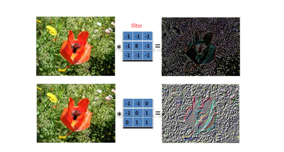 输入一幅图像f(x,y),经过特定设计的卷积核g(x,y)进行卷积处理以后,输出图像将会得到模糊,边缘强化等各种效果。