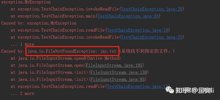 我们常常会想要在捕获一个异常后抛出另一个异常,并且希望把原始异常的信息保存下来,这被称为异常链。公司的框架提供统一异常处理就用到异常链,我们自定义封装异常,不要丢弃原始异常的信息,否则排查问题就头疼啦