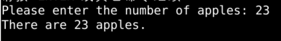 apple_count = input("Please enter the number of apples: ") print("There are", apple_count, "apples.")