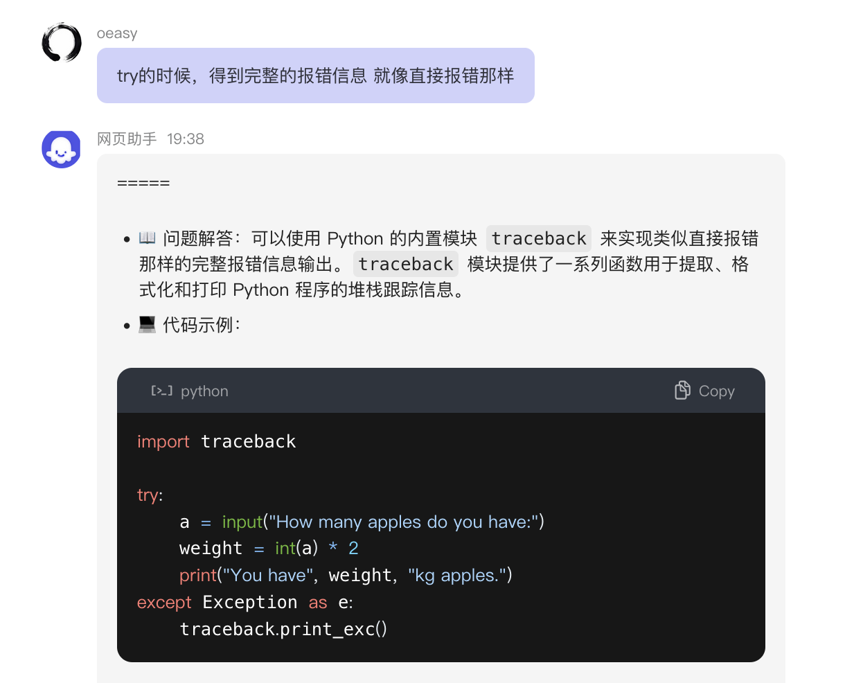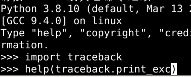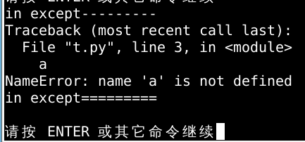 import traceback try: a except: print("in except---------") traceback.print_exc() print("in except=========")