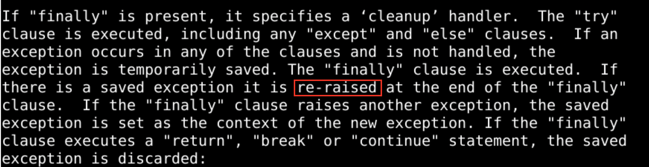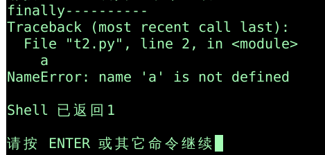 最后再抛异常 try: a except ValueError: print(ValueError) else: print("Nothing Wrong") finally: print("finally----------")