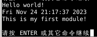 import __hello__ import time print(time.asctime()) print("This is my first module")